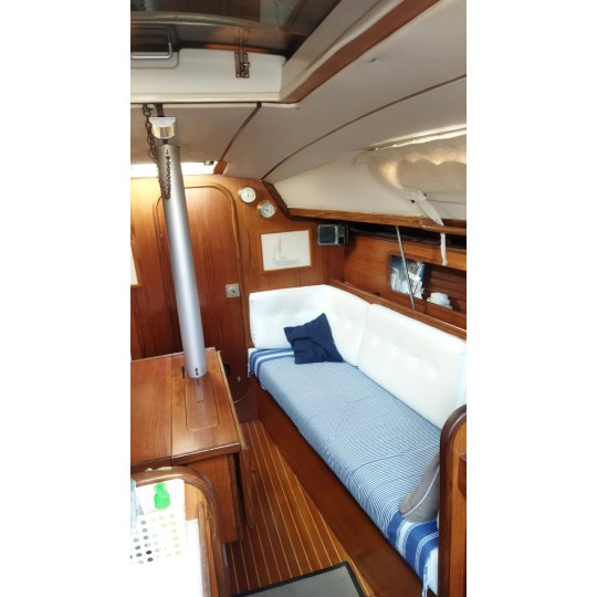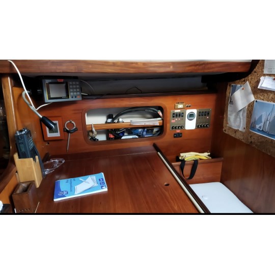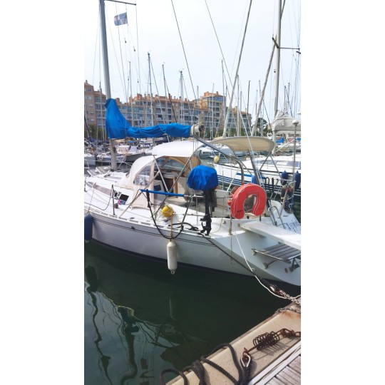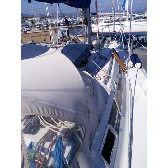 Dimensions: HT 10m40 ( coque 9m94), largeur 3m37, tirant d'eau 1m45